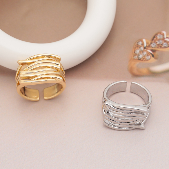 卸売デザインリング 多層風 指輪 メタル オープンリング 13号内径約17mm(幅約14mm)(1ヶ)