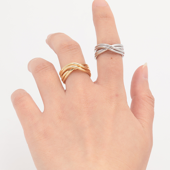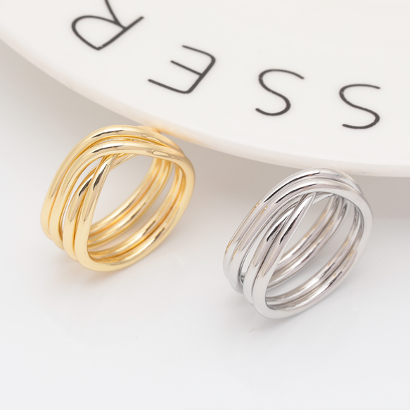 卸売デザインリング 四連クロス 指輪 メタル オープンリング 13号内径約17mm(幅約9mm)(1ヶ)