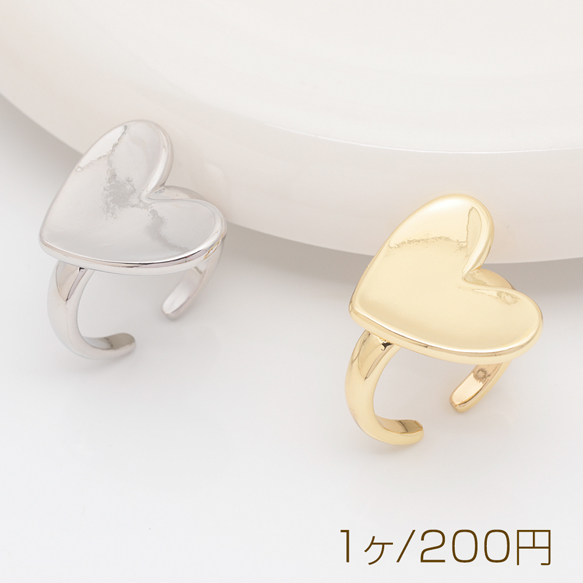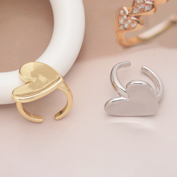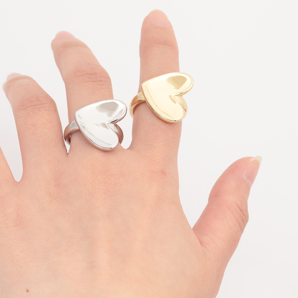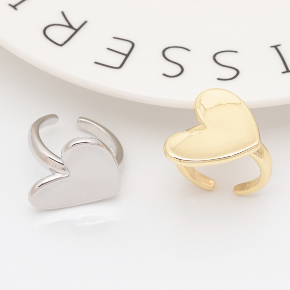 卸売デザインリング 大きめハート 指輪 メタル オープンリング 15号内径約17.7mm(幅約23mm)(1ヶ)
