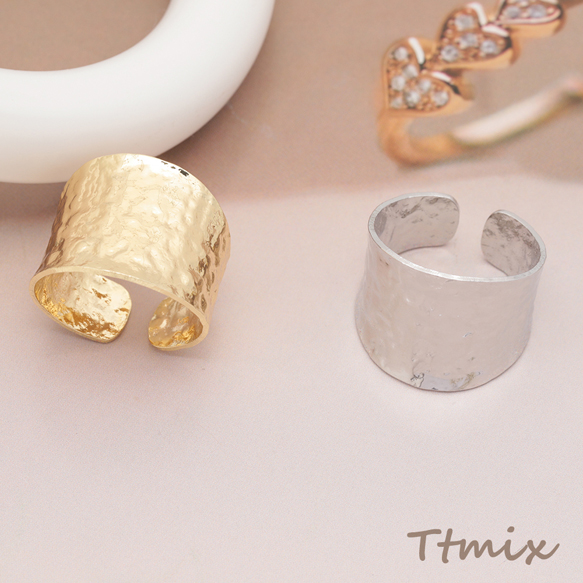 ファッションリング 指輪 ワイドリング 幅広リング カーブリング サイズ調整可 内径約18mm(幅約18mm)(1個)