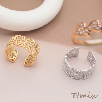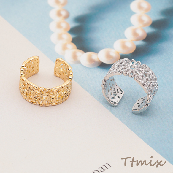 ファッションリング 指輪 透かし調リング オープンリング レディース用 サイズ調整可 内径約17.4mm(幅約9mm)(1個)