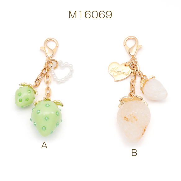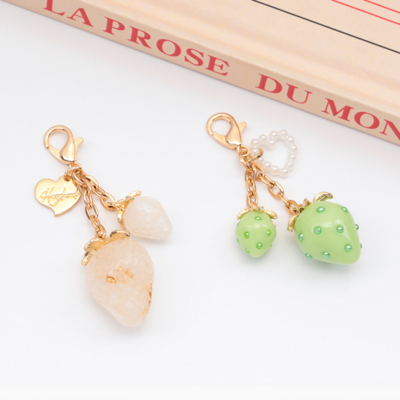 いちごキーホルダー ミニ苺とハートチャーム付き 苺ストラップ イチゴバッグチャーム 鍵とパスケースに付けても可愛い(1個)