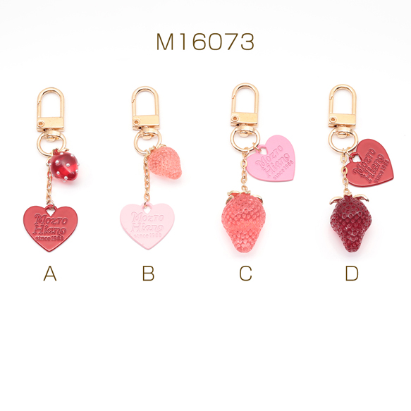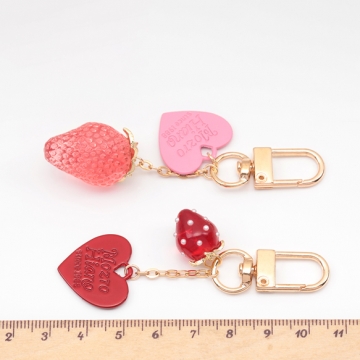 いちごキーホルダー ハートチャーム付き 苺ストラップ イチゴバッグチャーム 鍵とパスケースに付けても可愛い(1個)