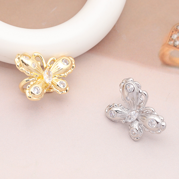 卸売イヤーカフ 蝶々 ジルコニア付き ちょうちょ ピアスホール不要 片耳 両耳 耳飾り メタルイヤーカフ 約17×22mm(1ヶ)