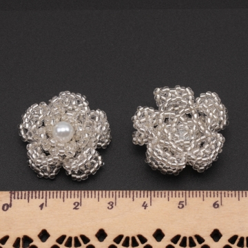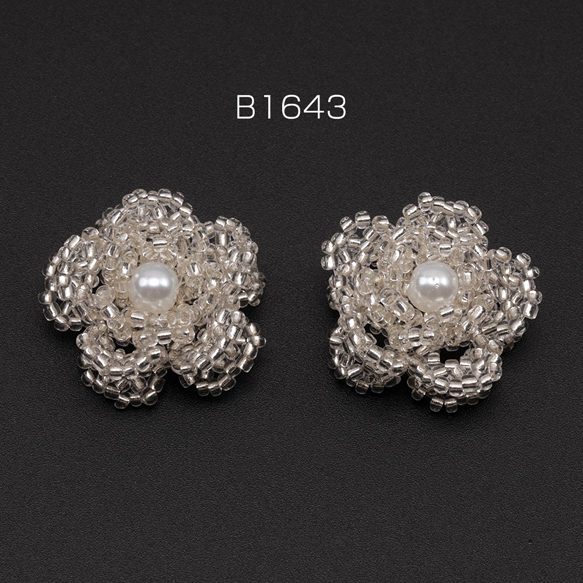 ビーズ編みパーツ お花 五弁花 編みフラワー 手作り ビーズ編みチャーム 貼り付けパーツ 約28mm(1ヶ)