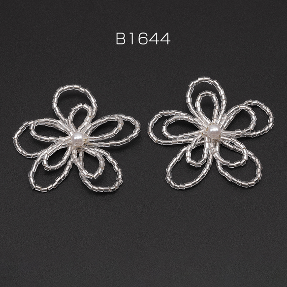 ビーズ編みパーツ お花 二連 五弁花 編みフラワー 手作り 貼り付けパーツ カボション 約45mm(1ヶ)