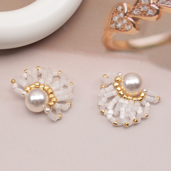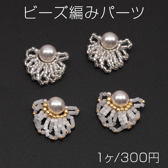ビーズ編みパーツ お花 ABSパール 編みフラワー 手作り ビーズ編みチャーム 約20mm(1ヶ)