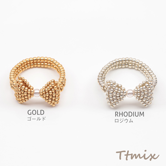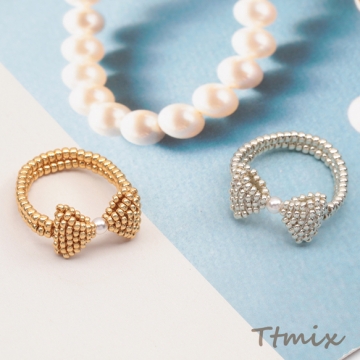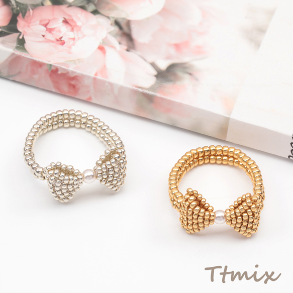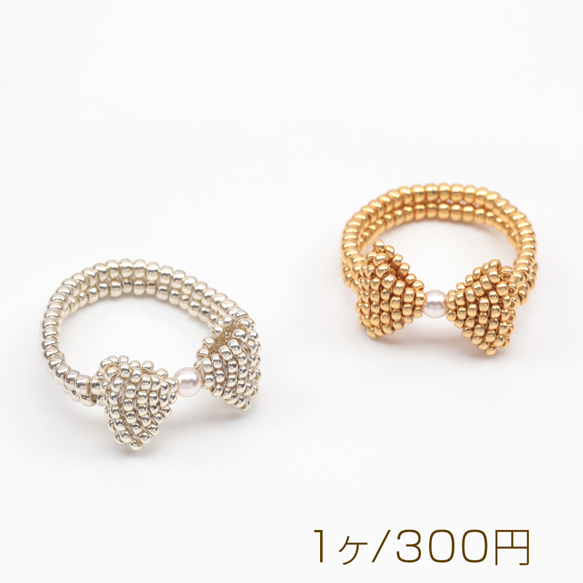 デザインリング リボン 編みビーズ ABSパール 15号内径約17.7mm(幅約11mm)(1ヶ)