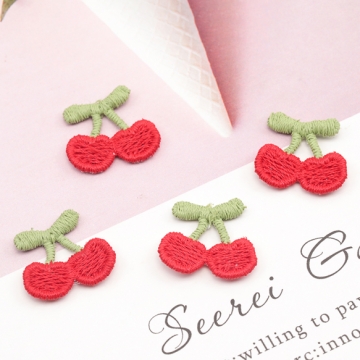 刺繍ワッペン チェリー アップリケ 刺繍パーツ テープキーホルダー装飾 衣服 帽子飾り付け 約16×18mm (20ケ)