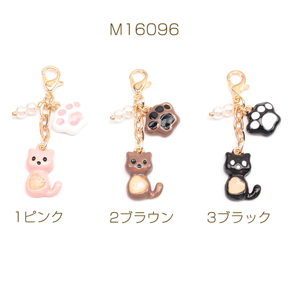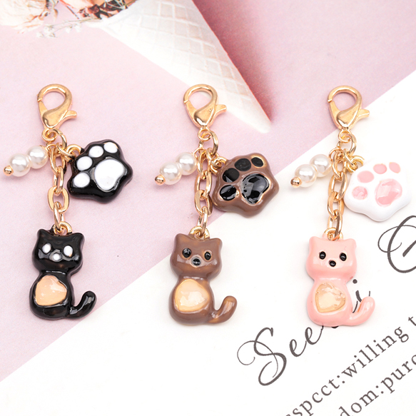 カニカン付きチャーム 猫 キャット 足跡 スマホチャーム マスクチャーム ねこストラップ キーホルダー(1ヶ)