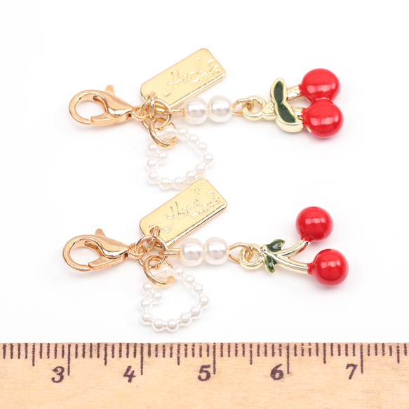 カニカン付きチャーム さくらんぼ チェリー スマホチャーム マスクチャーム ストラップ キーホルダー(1ヶ)