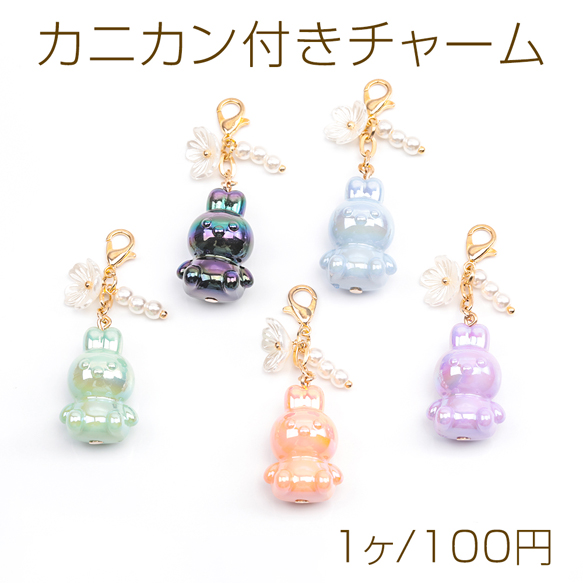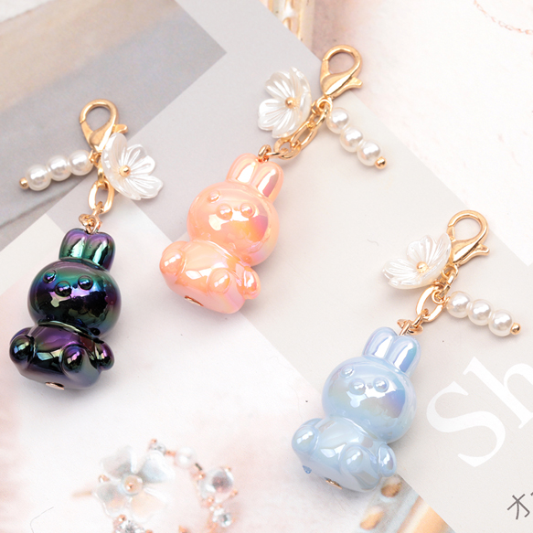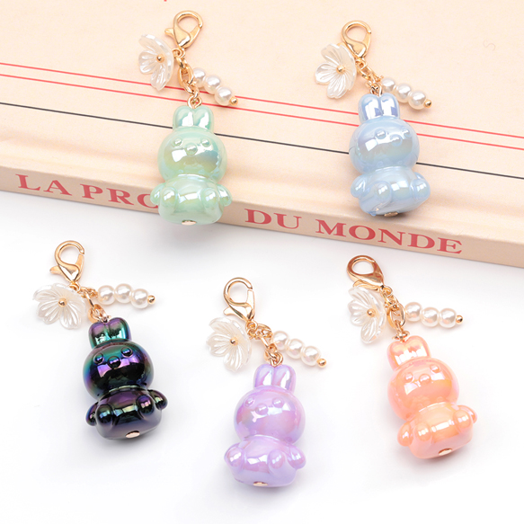 カニカン付きチャーム 可愛い立体うさぎ 兔ビーズ スマホチャーム マスクチャーム ストラップ キーホルダー(1ヶ)