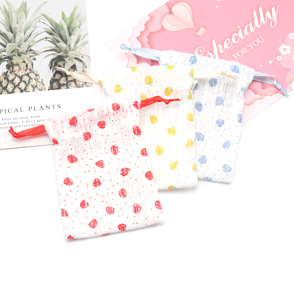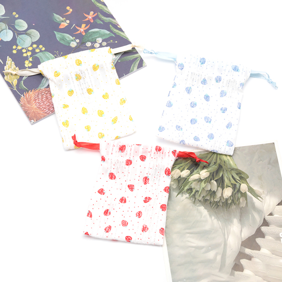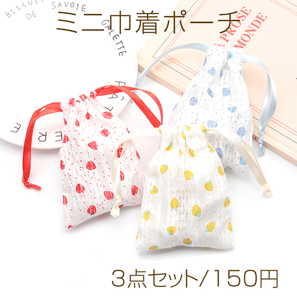 ミニ巾着ポーチ3点セット 大人可愛い いちご柄 小物入れ プチギフトにも (3点セット)
