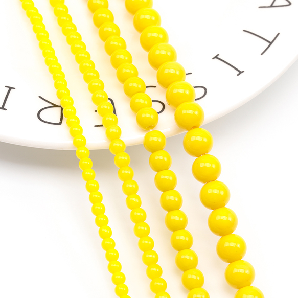 ガラスビーズ ラウンド 丸玉 丸形ビーズ イエロー 一連ビーズ 約3mm(1連(約115ヶ))