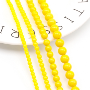 ガラスビーズ ラウンド 丸玉 丸形ビーズ イエロー 一連ビーズ 約4mm(1連(約95ヶ))
