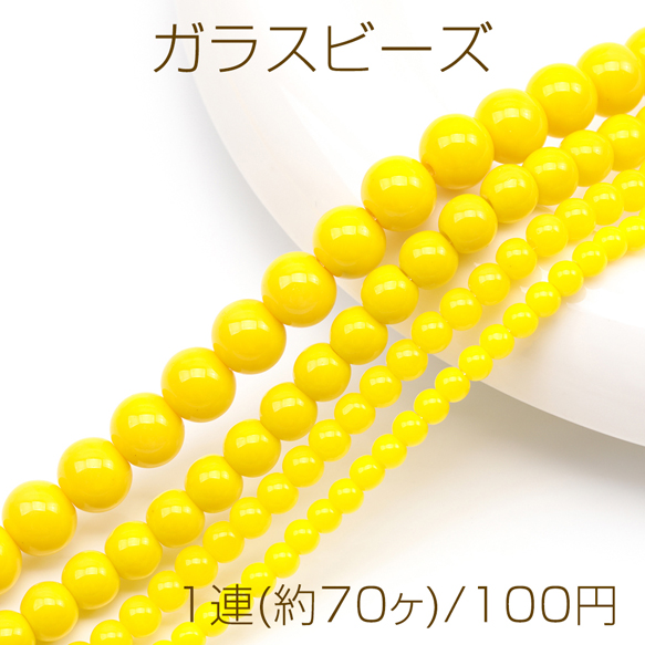 ガラスビーズ ラウンド 丸玉 丸形ビーズ イエロー 一連ビーズ 約6mm(1連(約70ヶ))