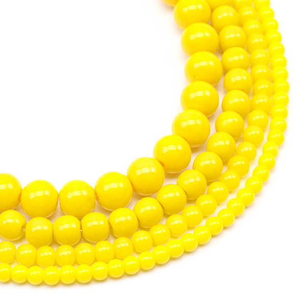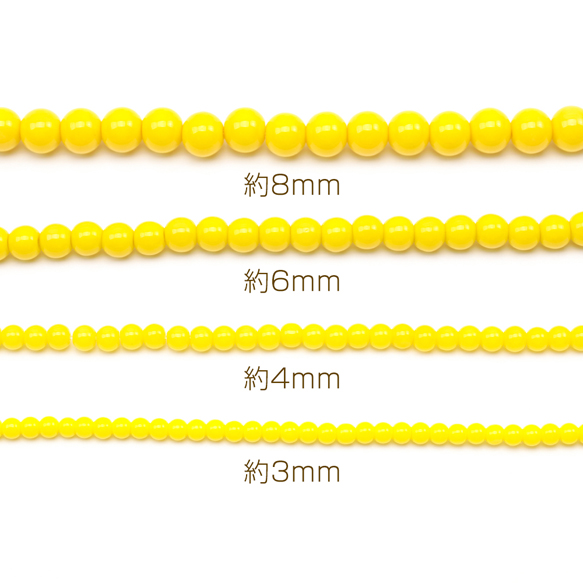 ガラスビーズ ラウンド 丸玉 丸形ビーズ イエロー 一連ビーズ 約8mm(1連(約50ヶ))