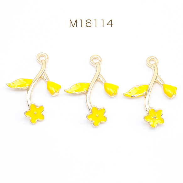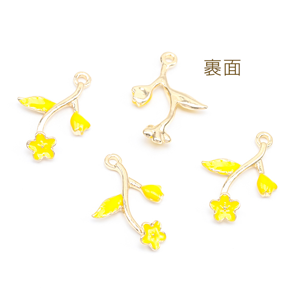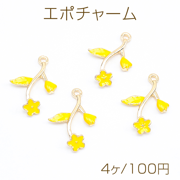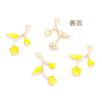 エポチャーム フラワー お花 イエロー メタルチャーム 約15×22mm(4ヶ)