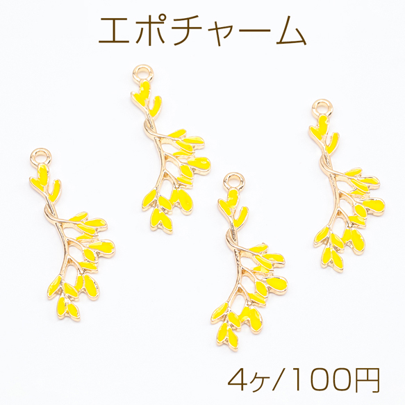 エポチャーム 葉っぱ リーフ イエロー メタルチャーム 約12×30mm(4ヶ)