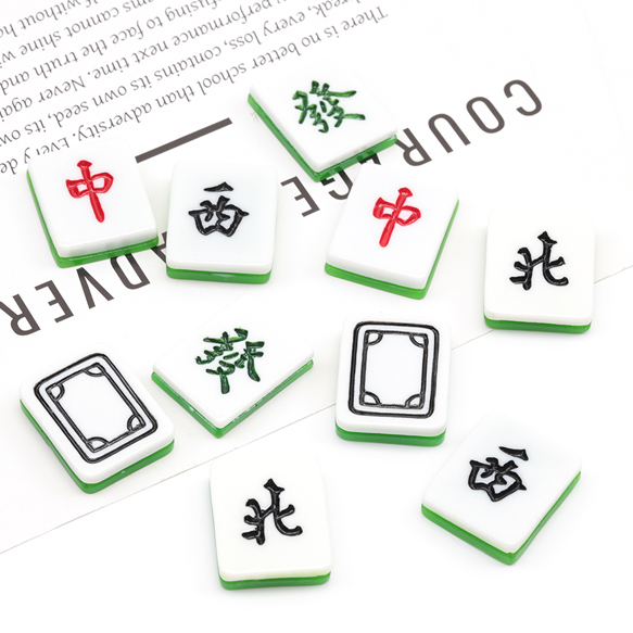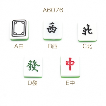 樹脂貼付けパーツ 麻雀牌 白/西/北/發/中 アクリルパーツ デコパーツ 約20×26mm(6ヶ)