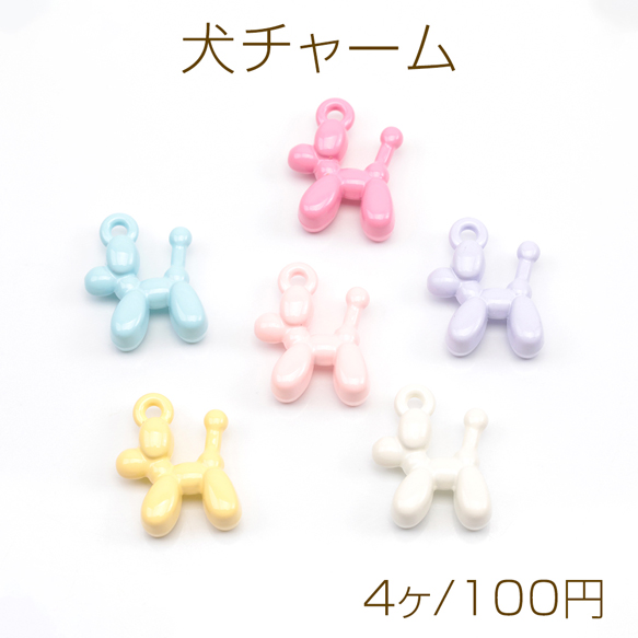 犬チャーム カラフル いぬ イヌ 動物 アニマル 立体 メタルチャーム 約12×15mm(4ヶ)