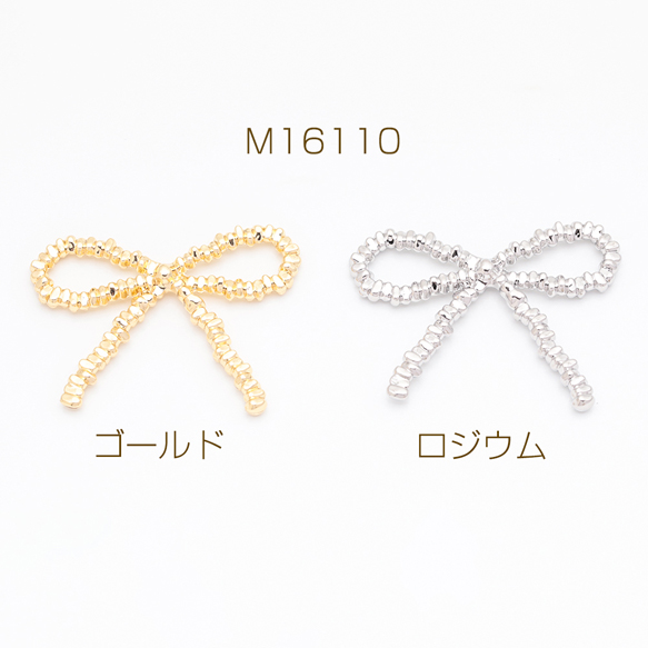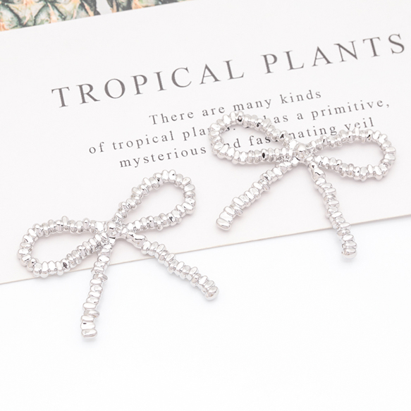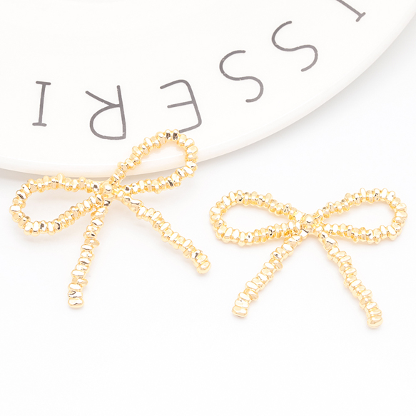 メタルパーツ リボン 蝶々結び カンなし リボンパーツ ゴールド/ロジウムカラー 約29×38mm(1ヶ)