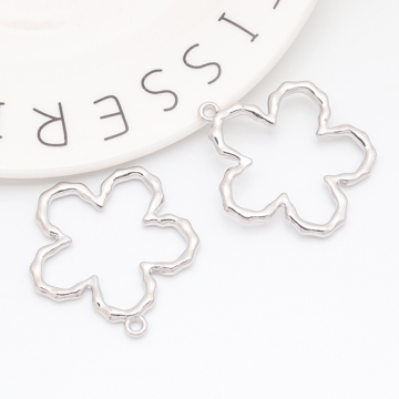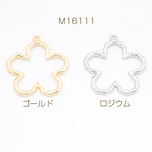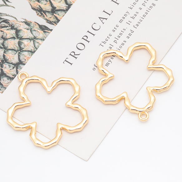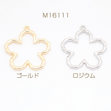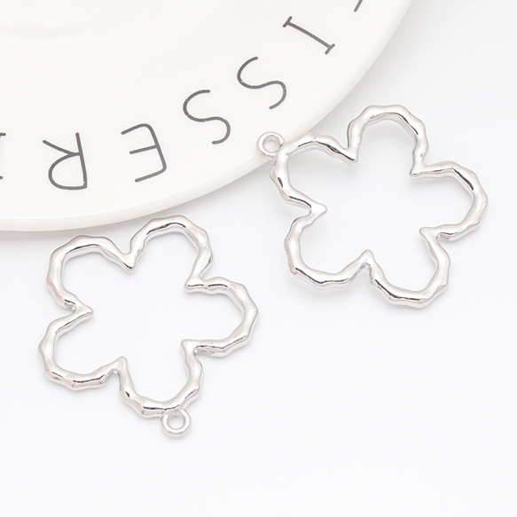 メタルフレームチャーム お花 五弁花 手書風 中抜き カン付き フラワーチャーム 約40×43mm(1ヶ)