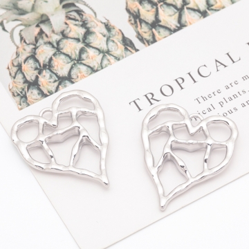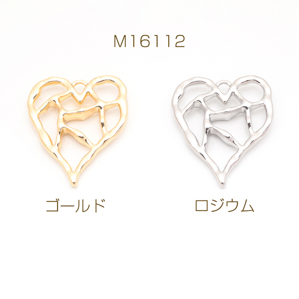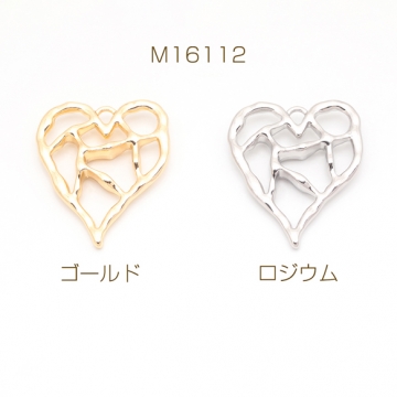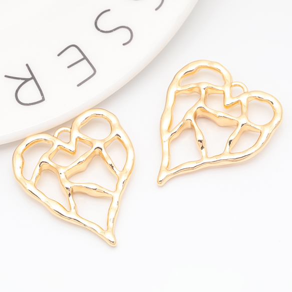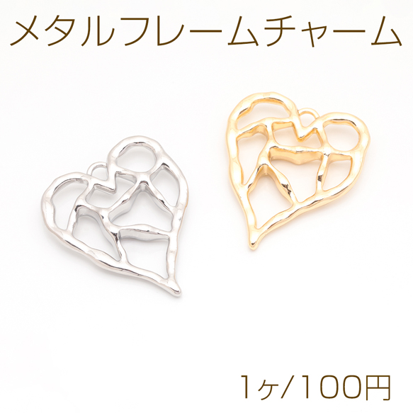メタルフレームチャーム ハート 手書風 カン付き フラワーチャーム 約30×36mm(1ヶ)