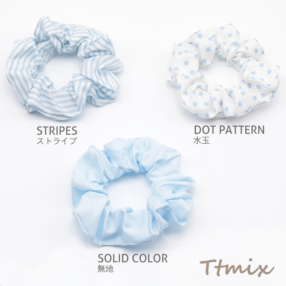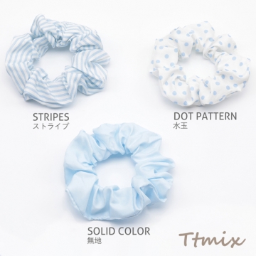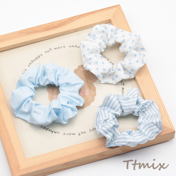 シュシュ ブルー シンプル ストライプ 水玉 無地 髪飾り 髪留め ヘアゴム ヘアアクセサリー(1ヶ)