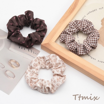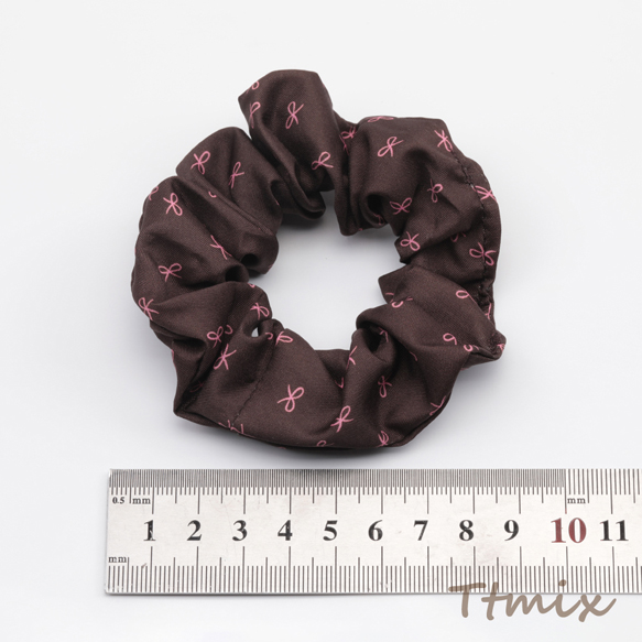 シュシュ ブラウン シンプル チェック リボン フラワー 髪飾り 髪留め ヘアゴム ヘアアクセサリー(1ヶ)