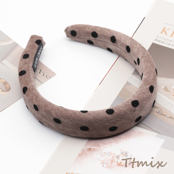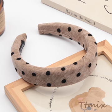 カチューシャ 水玉ドット柄 ボリューム感 厚みのあるヘアバンド ウール 秋冬用 髪飾り ヘアアクセサリー 幅約3cm(1ヶ)