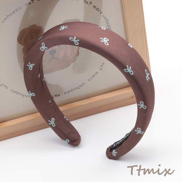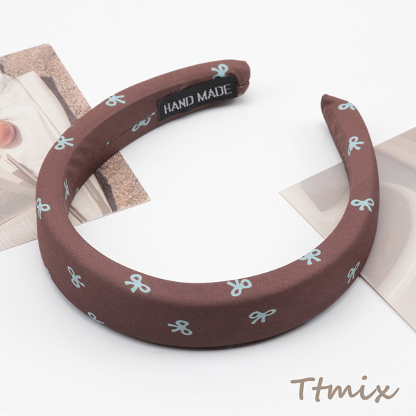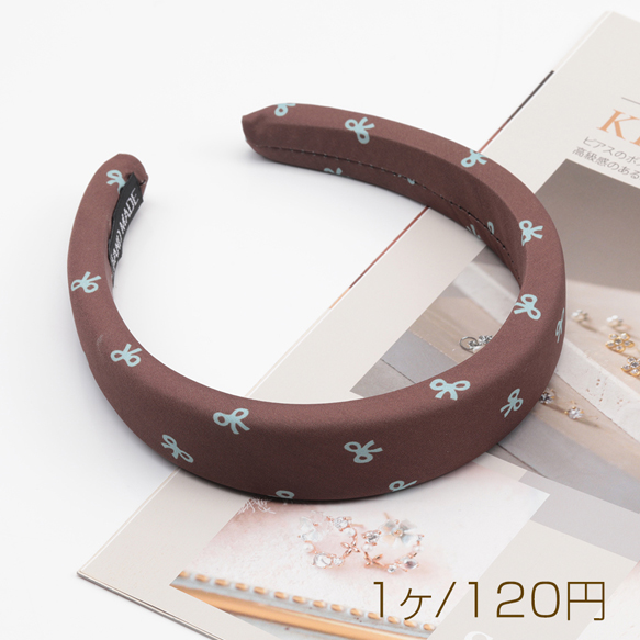 カチューシャ リボン柄 ブラウン ボリューム感 厚みのあるヘアバンド 髪飾り ヘアアクセサリー 幅約3cm(1ヶ)
