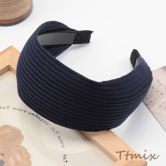 カチューシャ ワイド 幅広 ストライプ ニット生地 ヘアバンド 髪飾り ヘアアクセサリー 幅約6.5cm(1ヶ)