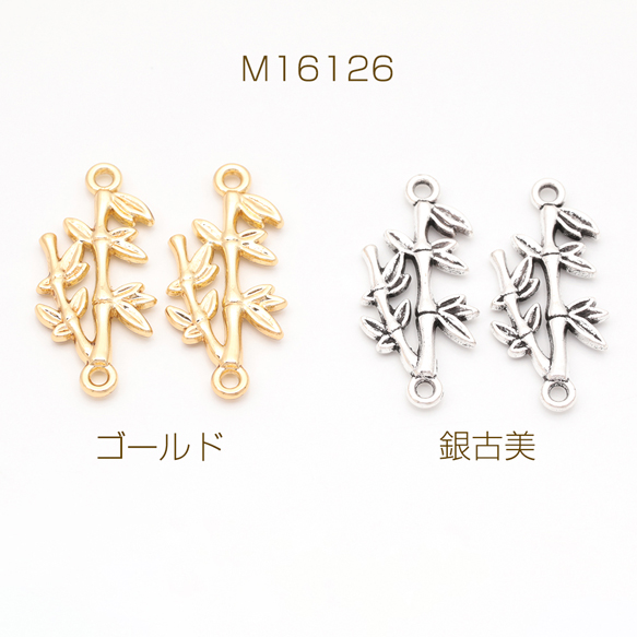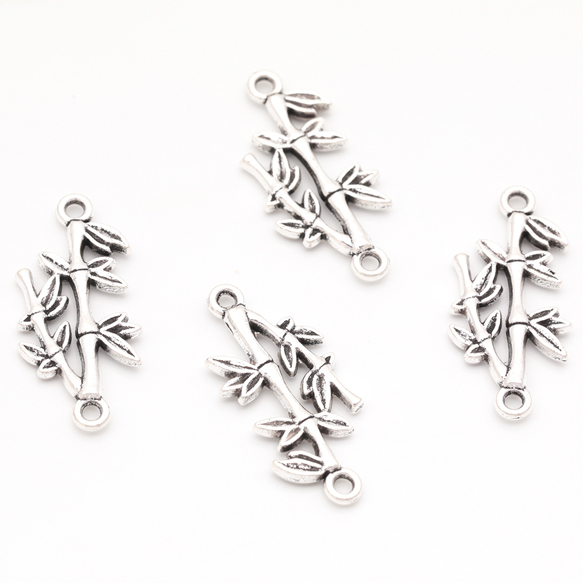 コネクターチャーム 竹 葉っぱ 接続金具 連結 コネクター 植物チャーム メタルチャーム 約12×25mm(6ヶ)