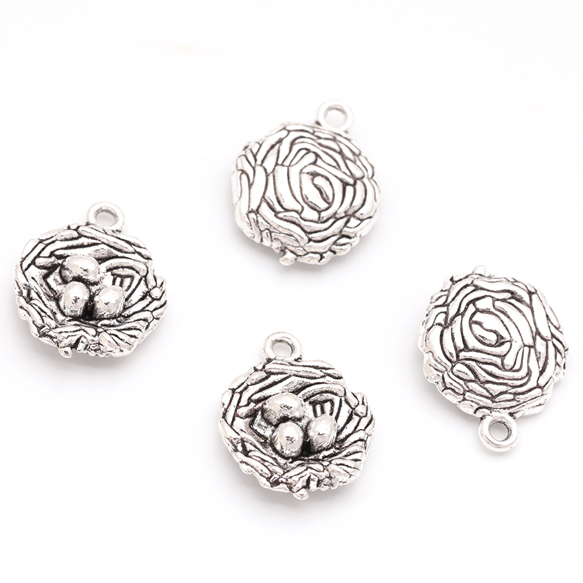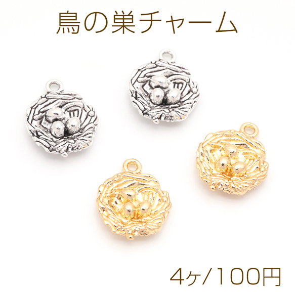 鳥の巣チャーム たまご付き ユニーク 動物 鳥チャーム メタルチャーム 約15×19mm(4ヶ)
