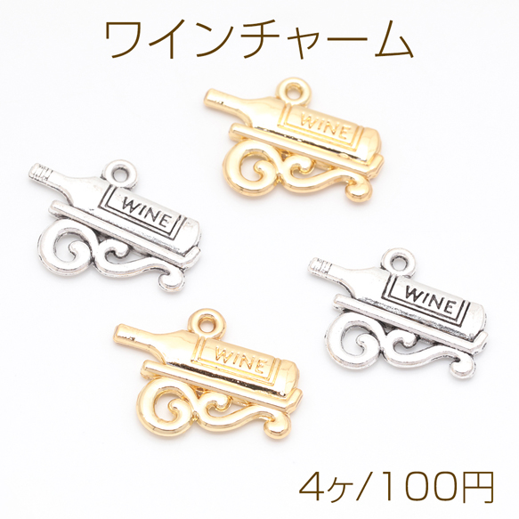 ワインチャーム ワインボトル 瓶 お酒 飲み物 ドリンクチャーム メタルチャーム 約17×23mm(4ヶ)