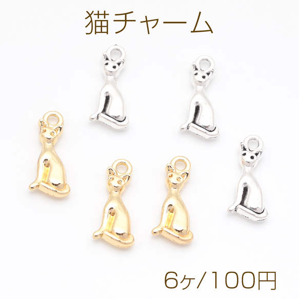 猫チャーム スリムなネコ アニマル 動物チャーム メタルチャーム 約8×18mm(6ヶ)