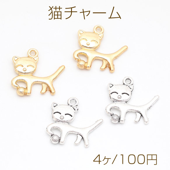 猫チャーム ネコ ボール遊び アニマル 動物チャーム メタルチャーム 約18×19mm(4ヶ)