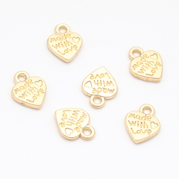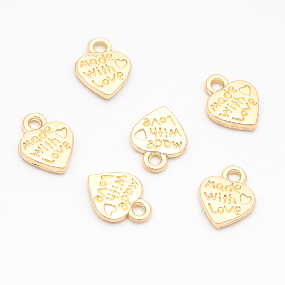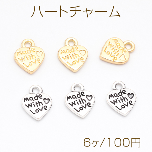 ハートチャーム LOVE 手書風 プレートチャーム メタルプレートチャーム 約10×12mm(6ヶ)