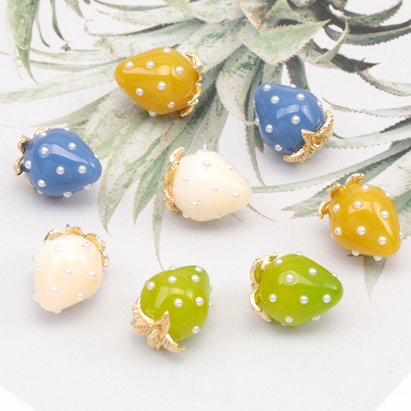 いちごチャーム NEWカラー 2026年春の新色 パール付き ストロベリー イチゴ 苺 樹脂チャーム 約12×16mm(2ヶ)