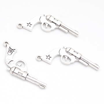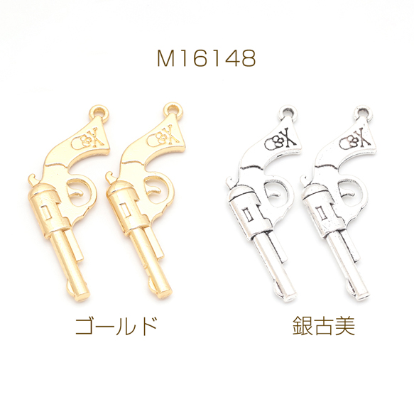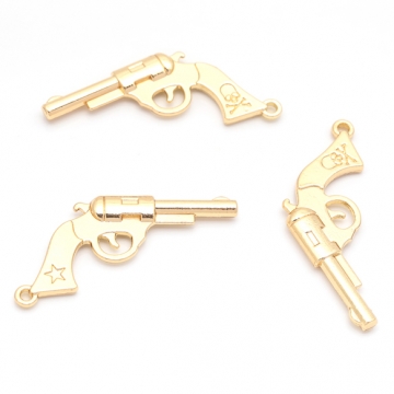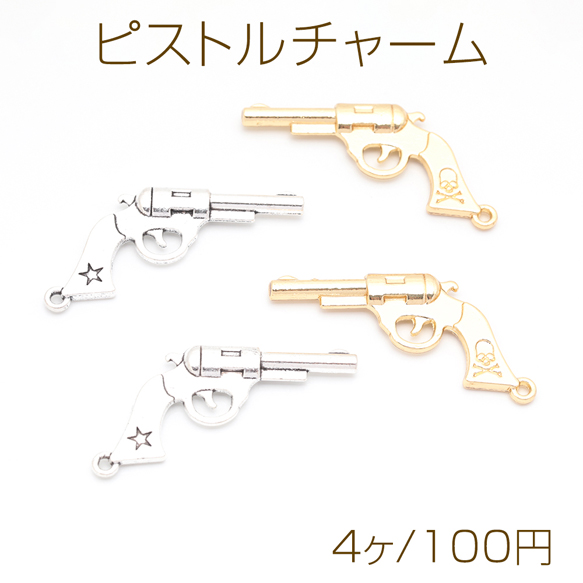 ピストルチャーム ドクロマーク 銃 鉄砲 武器 警察 ポリス スパイ メタルチャーム 約20×40mm(4ヶ)