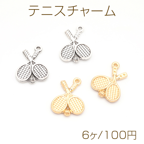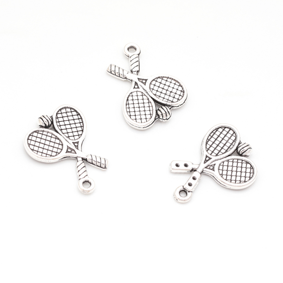 テニスチャーム ラケット&ボール ミニチュア スポーツチャーム メタルチャーム 約14×18mm(6ヶ)