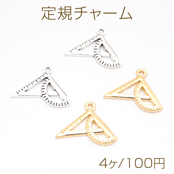 定規チャーム 三角定規 分度器 文房具 ミニチュア メタルチャーム 約20×22mm(4ヶ)