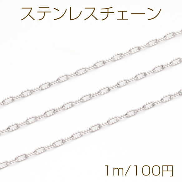 ステンレスチェーン オーバル シンプル デザインチェーン メタルチェーン 基礎金具 幅約1.5mm(1m)