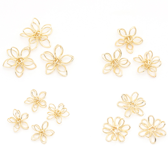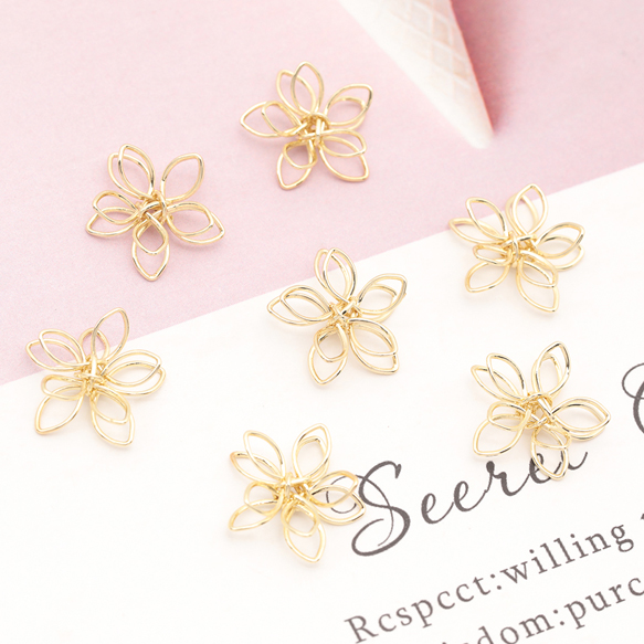 ワイヤーチャーム フラワー 二重 五弁花 お花の立体ワイヤーチャーム ワイヤーパーツ 約12mm(4ヶ)