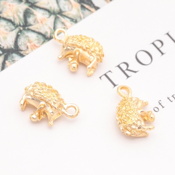 アニマルチャーム 立体ハリネズミ 動物チャーム ピアス ネックレス ハンドメイド素材 カン付き 約10×14mm (6ヶ)
