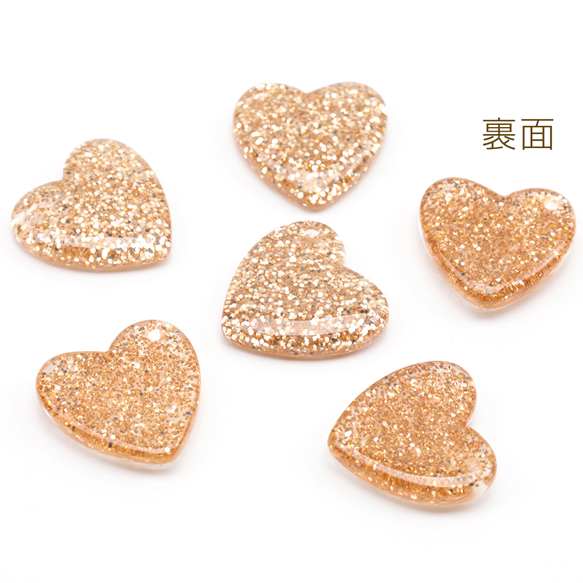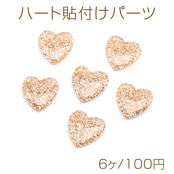 ハート貼付けパーツ ラメ入りデコパーツ カボション ヘアクリップ スマホデコレーションパーツ 約18×18mm(6ヶ)