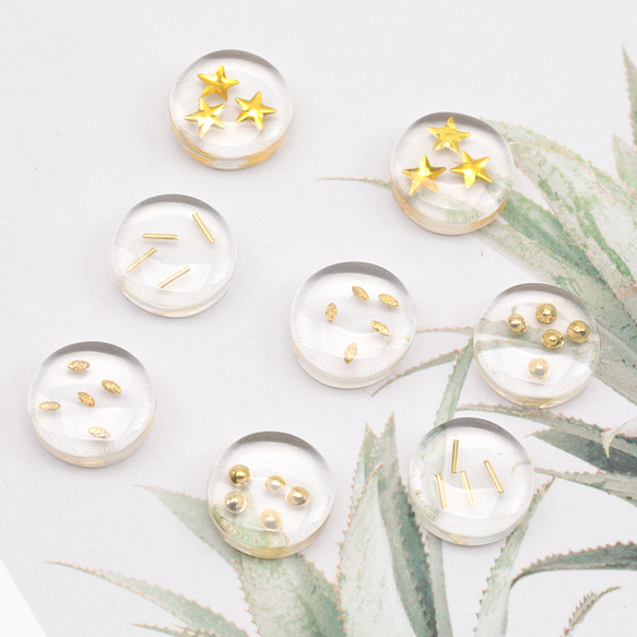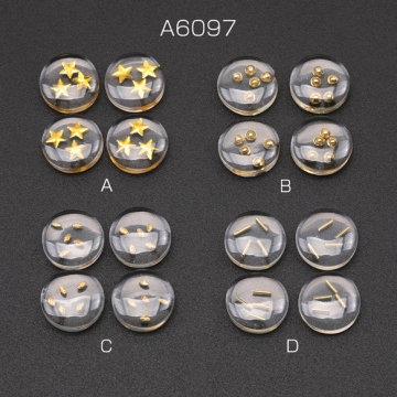 樹脂貼付けパーツ 丸型デコパーツ クリア 封入パーツ入り ヘアクリップ スマホなどデコレーションパーツ 約11mm(6ヶ)