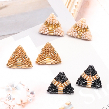 デザインピアス 三角形 トライアングル ガラスビーズ 編みチャーム スタッドピアス メタルチャーム 約17×18mm(1ペア)