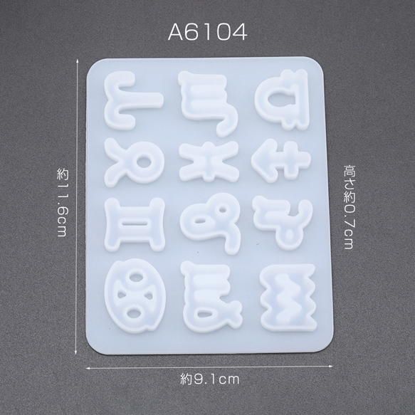 シリコンモールド 12星座 カボション レジン型 約0.7×9.1×11.6cm(1ヶ)